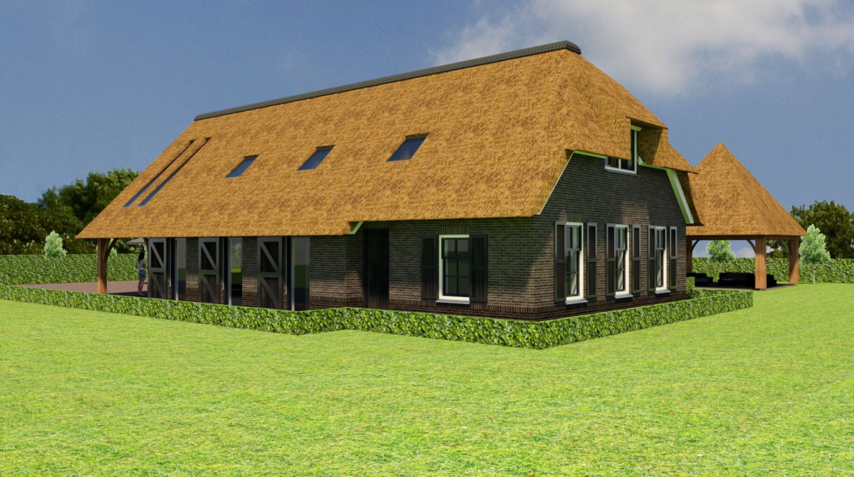 Mooie moderne woonboerderij waarin karakteristiek en modern elkaar heel goed aanvullen. De woonboerderij heeft zoals vele voormalige boerderijen een voor en een achterhuis. Het voorhuis heeft kozijnen met roedes en luiken die gebruikt kunnen worden. Het achterhuis lange ramen (grupdeuren) met openslaande opgeklampte deuren. I.v.m. de BENG-regeling kan dit heel goed gebruikt worden als zonwering. M.a.w. een zonwering die functioneel is als ook esthetisch.
